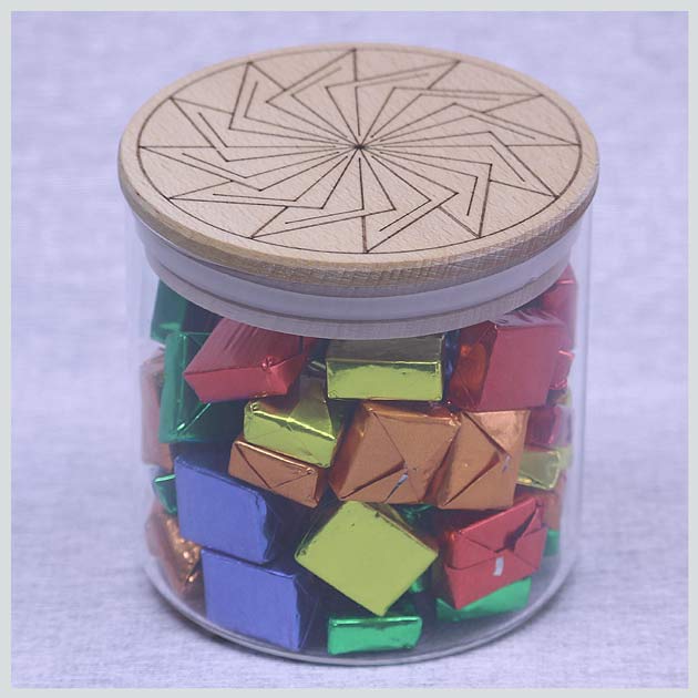 Geschenkglas mit Buchendeckel Mandala “Windrad”